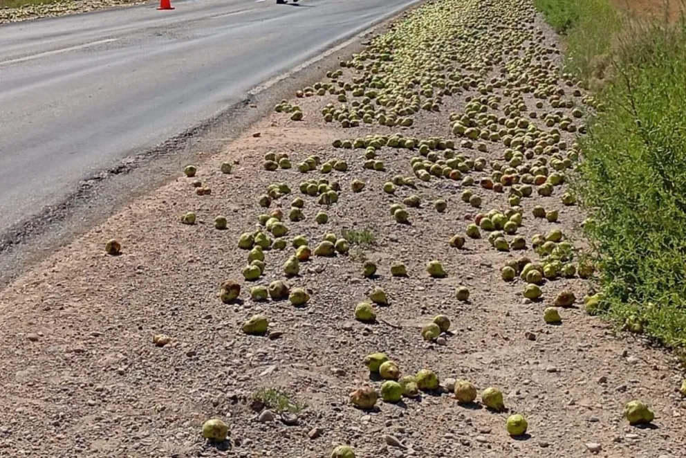 El camión transportaba bultos de peras y manzanas. Foto: archivo