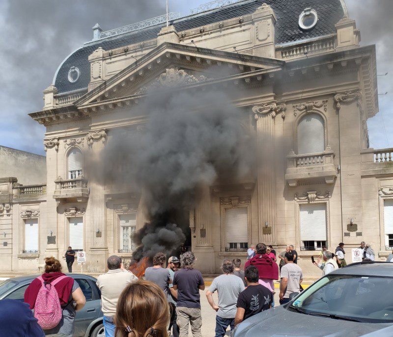 Una muestra del malestar que crece en sectores del campo se registró este lunes en 9 de Julio cuando productores inundados desde hace seis meses protestaron con quema de cubiertas y copando el palacio municipal para increpar a funcionarios.
