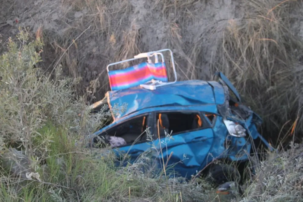El coche terminó adentro del desagüe que esta a la vera de la ruta chica. Fotos : Tania Domenicucci (ANRoca)